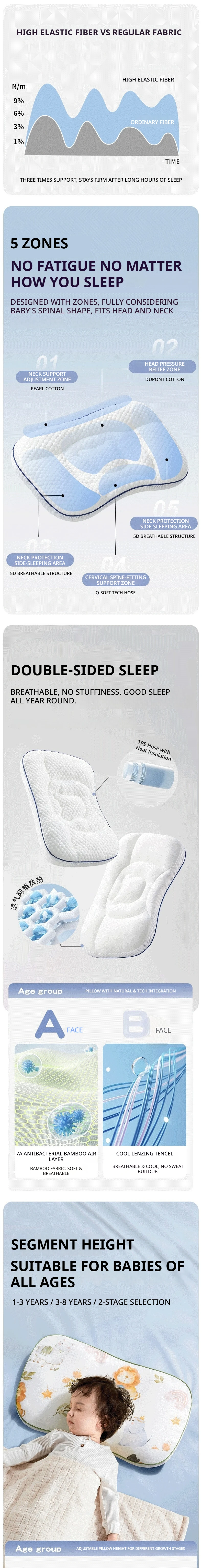Features 5 specialized support zones to cradle your child’s head and neck, fitting their developing spinal curve for comfortable sleep in any position.